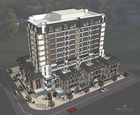 Ekistics prepared development plans for a new 12-storey development on Pepperell street in Halifax for Dexel Developments.