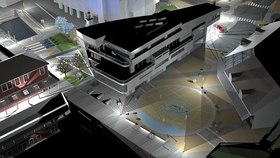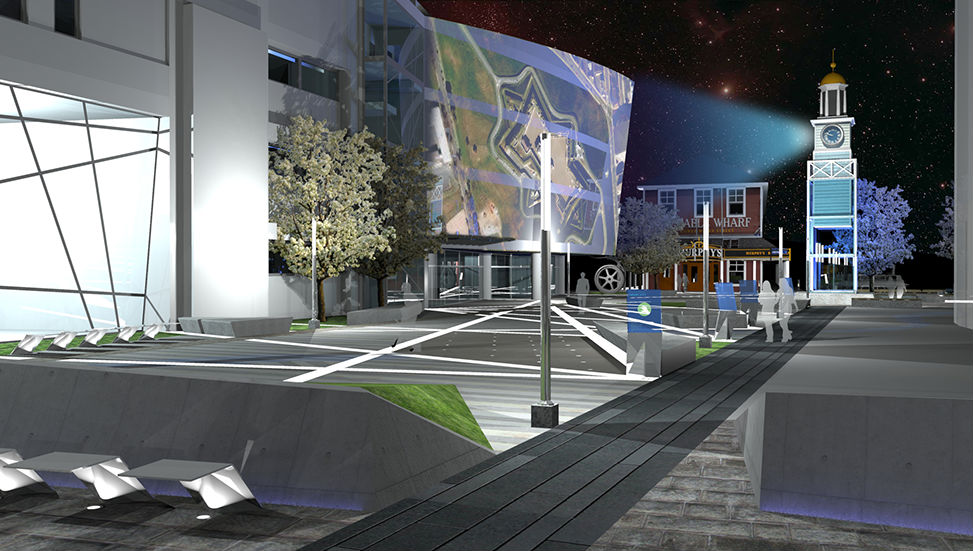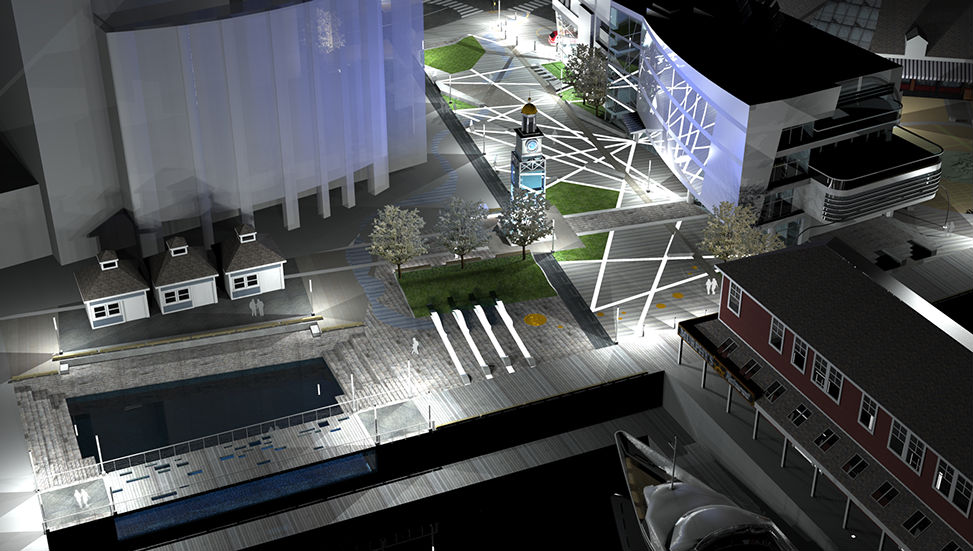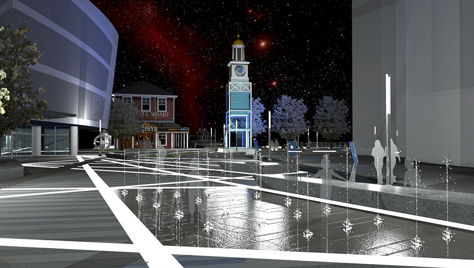 Ekistics was retained by the Provincial Waterfront Development Corporation to prepare a master plan for the redevelopment of Halifax's most prominent urban corridors, at the foot of George Street. Plans call for a state of the art project or technology installation, in-ground LED lighting, interactive interpretive elements, and the relocation of the oldest Naval Clock in North America (which will house the projector). A new sea aquarium bridge will bring the ocean right up to waterfront visitors, and a new mixed use development will replace the existing Nova Scotia Crystal building.
