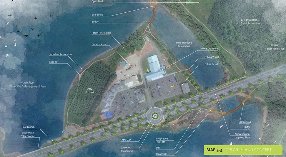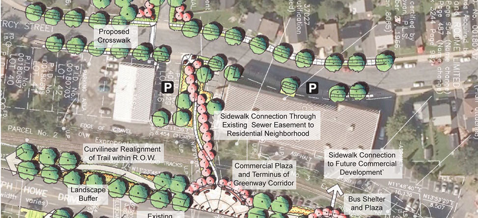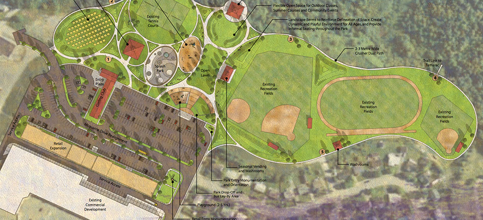 The planned realignment of McQuarrie Drive provided the Town of Port Hawkesbury with the impetus to undertake a conceptual design process for the adjacent parkland. The revitalized open space and adjacent retail area create a vibrant community destination for Town residents and visitors alike.