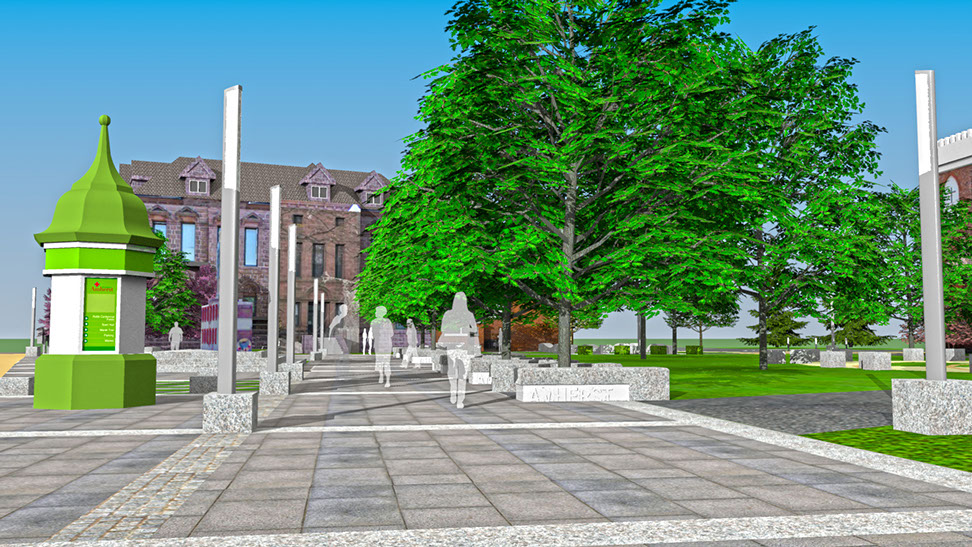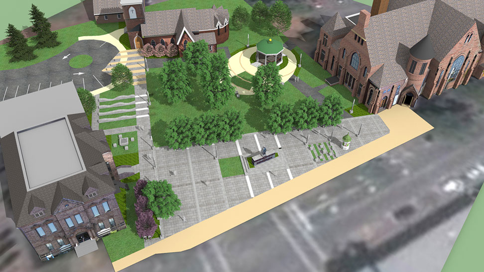 Victoria Square is an exciting project that evoloved from Ekistics’ Downtown Amherst Action Strategy. The square is surrounded by three beautiful, historic buildings and is home to the community’s War memorial. The community consultation relayed that the renovation was to honour the monument and become a place for