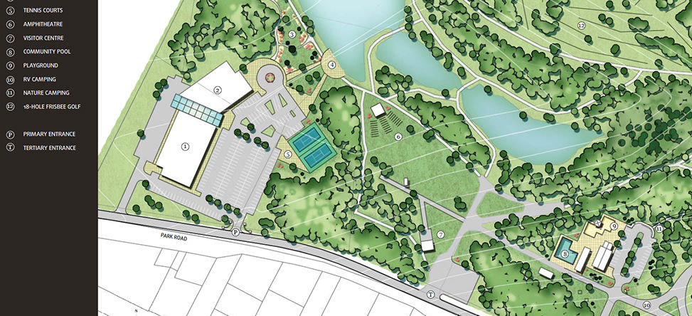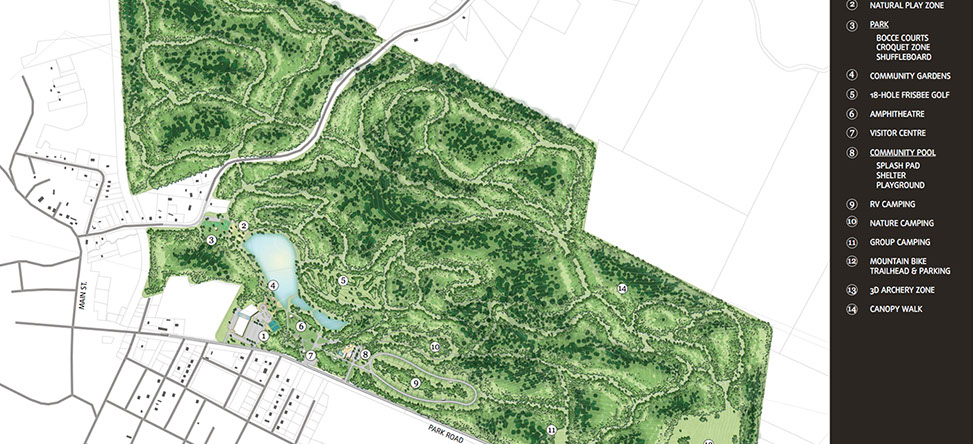 Trenton Park is one of the key open space assets in the Town of Trenton. Looking to strategically reinvest and revitalize the Park, the Town retained Ekistics to undertake a feasibility study for the campground operations and to complete a comprehensive master plan for the entire 500 acre park site. The resulting 7 year plan included such innovative elements as a canopy walk and frisbee golf, integrated with multi-generational facilities like bocce courts and walking trails.