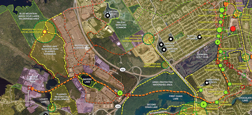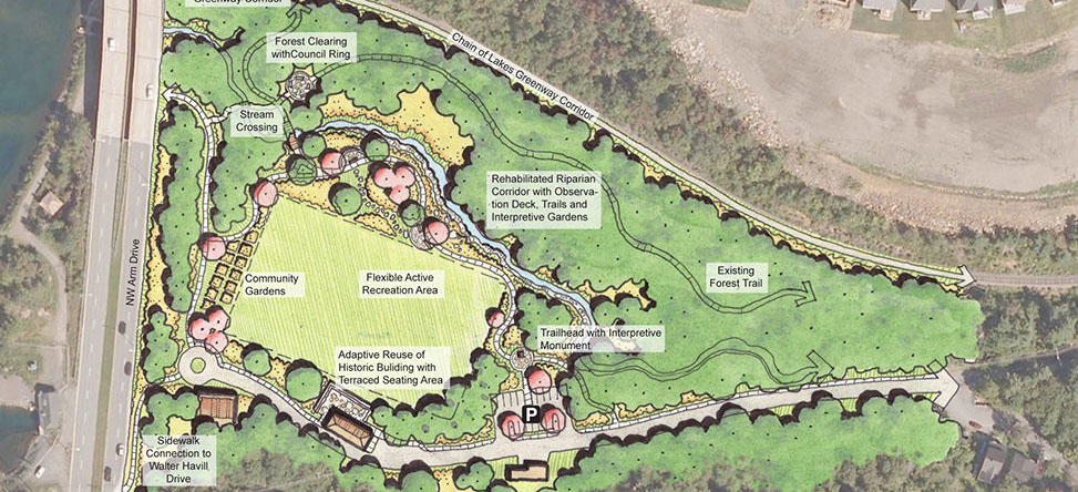 Ekistics was commissioned in the spring of 2011 to assist the HRM and the Chain of Lakes Trail Association with the development of a 7.25 km long greenway corridor. This linear green space provides a contiguous stretch of publicly accessible trails through mainland Halifax, linking key destinations. Focusing on sustainability, barrier free access, and crime prevention through environmental design, the greenway plan arose from an extensive public engagement process.