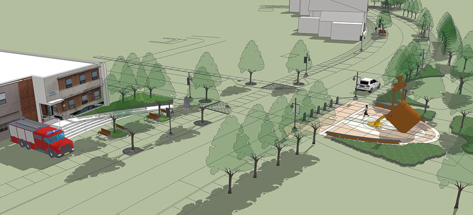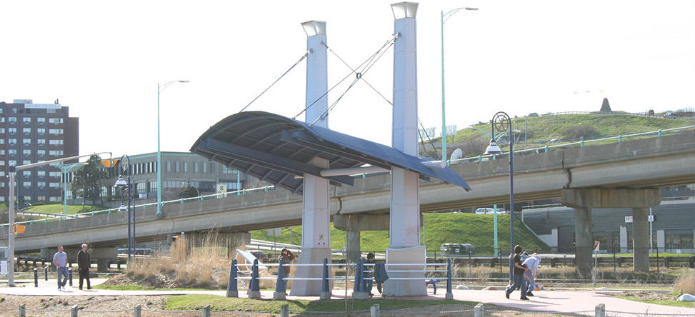 Ekistics, working with the Town of Trenton, undertook an ambitious and visionary urban design project to revitalize Main Street. Completed in the Spring of 2012, this project used the industrial heritage of Trenton's steel industry as inspiration for custom streetscape furnishings, large scale public art installations, an interactive water feature, and monument integrated ramp and stair system. Lighting, planting design, and general street upgrades finished off the scope of work. Completed for $1.0 million dollars, Main Street Trenton is not a street to miss!