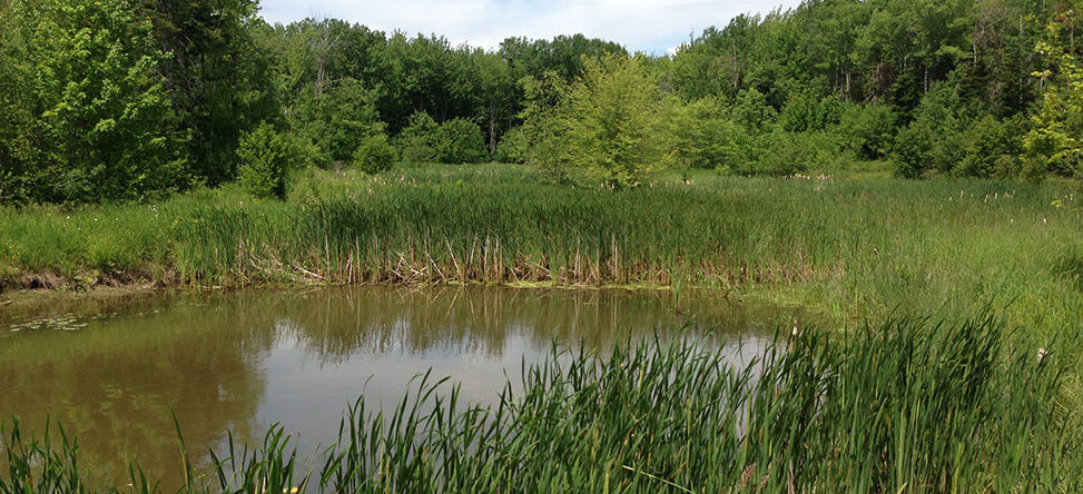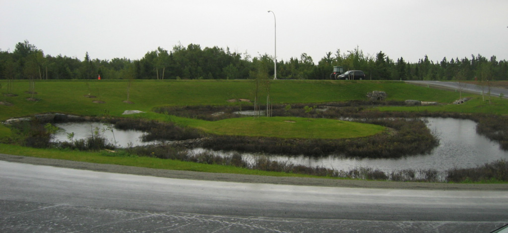 The urban stormwater wetland was commissioned by the City of Moncton engineering department to cope with significant stormwater pollution into the City's beloved Centennial Park. A 6 ft. stormwater culvert was diverted into a new 5 acre stormwater wetland. The wetland was designed for a minimum of 48 hours of retention time to uptake and treat nutrient laden stormwater before dispersing back into Jonathan Creek. The wetland was constructed in 2002 and there is currently a scientific study ongoing to monitor the longterm success of the facility.