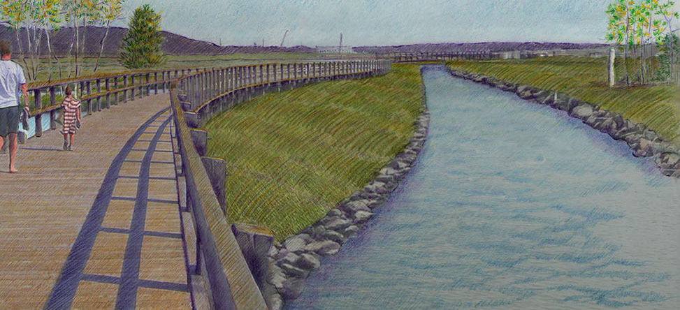 In association with the Glenn Group Ltd, Ekistics helped prepare the overall urban greenway strategy for the Saint John, NB waterfront. The development included an urban stormwater wetland, several km's of trails and several large interpretive shelters designed in the industrial waterfront character. Phase one for this project was completed in 2003 and phase 2 in 2009.
