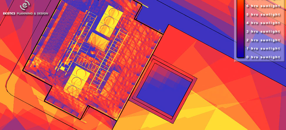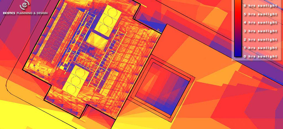 Ekistics and Dr. Robert Brown from the University of Guelph, were retained by Fox & Fowl Architects of New York to prepare a detailed microclimatic design assessment of the proposed 54 storey New York Times Tower in downtown Manhattan. A complete 3D model of the building and surrounding cityscape was prepared for the solar simulation component of the project. The project detailed the probable thermal comfort of the proposed rooftop garden and street level courtyard and outlined ways to improve thermal comfort. The report also outlined a palette of plants that could survive these two very different environments.